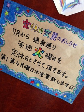 定休日が変わります!!